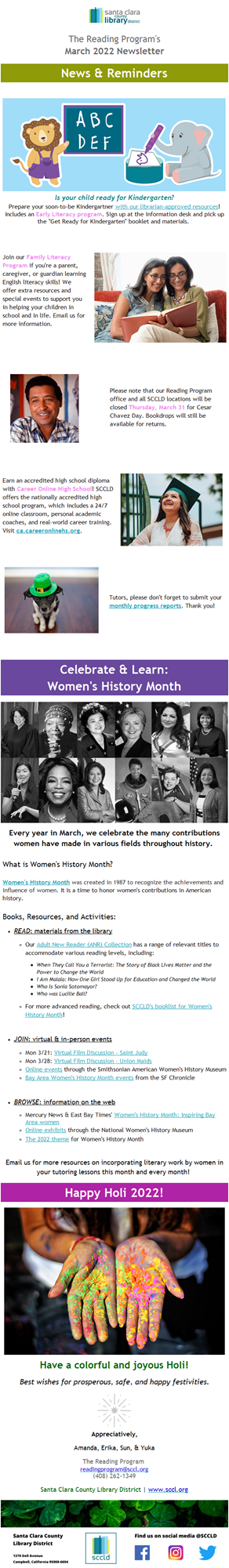 March 2022 Reading Program Newsletter Attention: This post is over 1 years old and the information may be out of date.Attention: This post is over 1 years old and the information may be out of date.March 1, 2022 Your browser does not support inline iframes. Visit reading program newsletter. PreviousNews PostNextNews Post