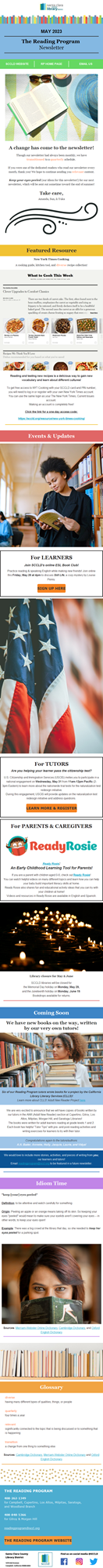May 2023 Reading Program Newsletter Attention: This post is over 1 years old and the information may be out of date.Attention: This post is over 1 years old and the information may be out of date.May 1, 2023 Your browser does not support inline iframes. Visit reading program newsletter. PreviousNews PostNextNews Post